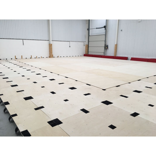 We offer different set ups for Gymnastics, Cheerleading and Freestyle sprung floors as well as a double layer floor suitable for adding an additional dance floor.