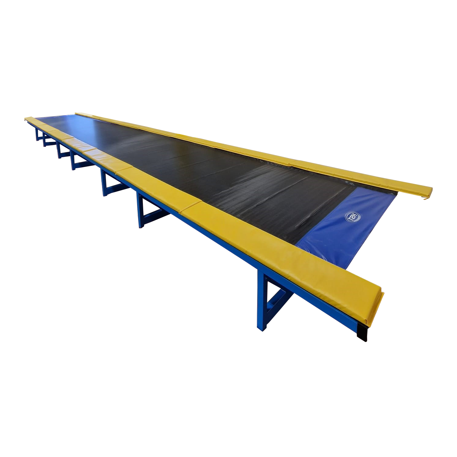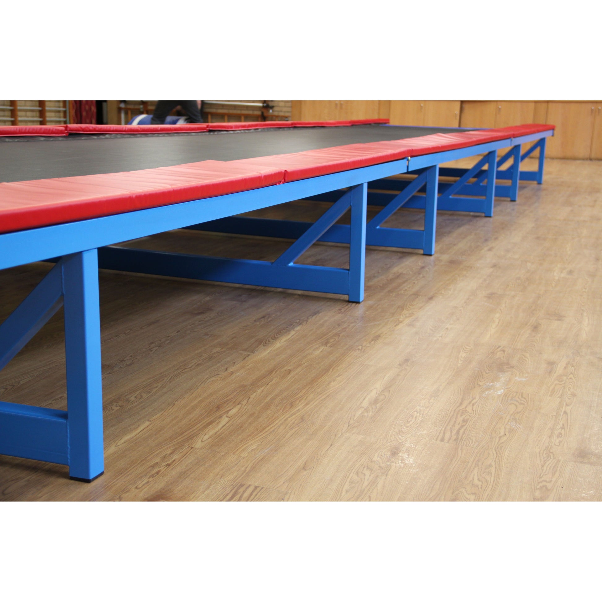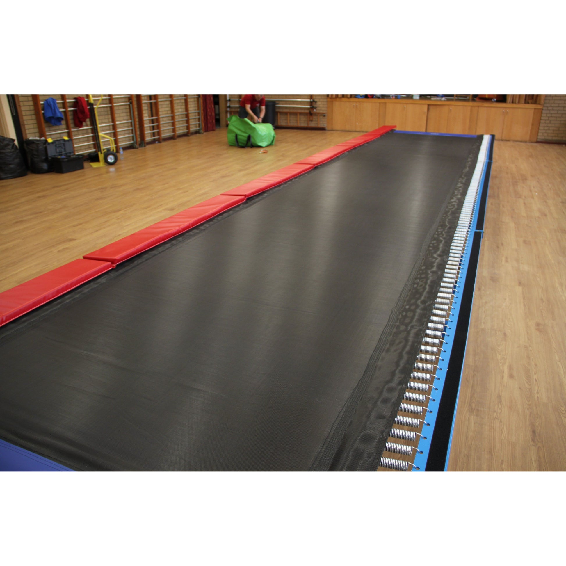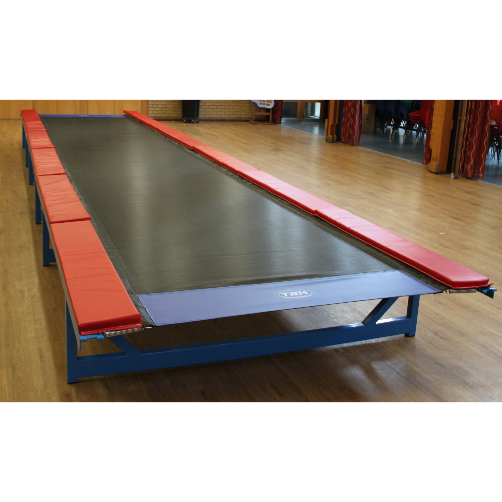 Our fast track is a great training aid for practicing new tumble passes and for practicing over a long period of time, producing a rebound between a trampoline and a fibreglass track.